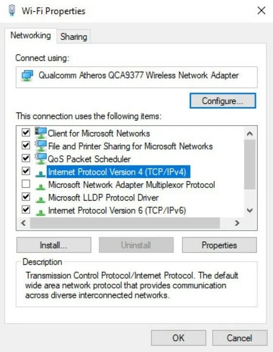 - klik kanan pada adapter Wi-Fi, pilih Properties.