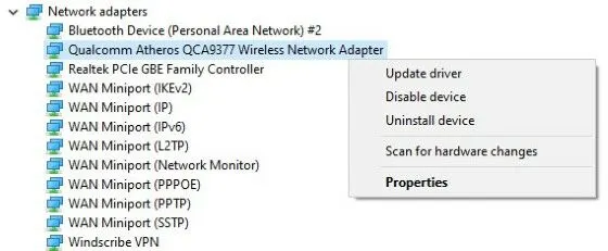- Cari driver Wi-Fi yang telah terinstall pada laptopmu. Kamu bisa menemukannya pada bagian Network Adapters.