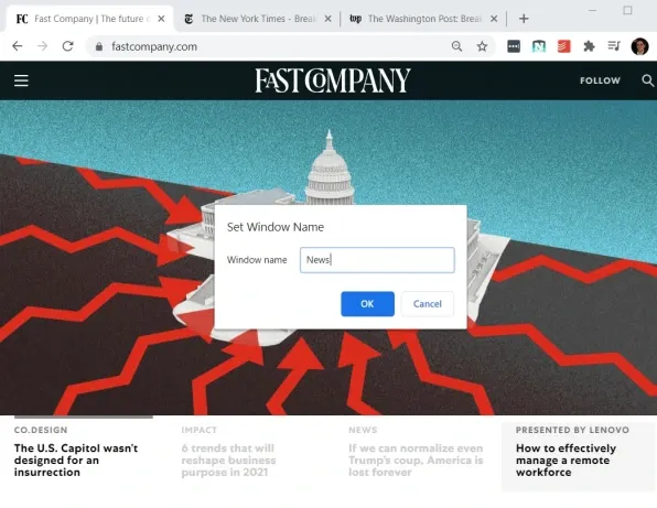 Satu-satunya masalah dengan memilah-milah tab ke dalam jendela terpisah adalah sulit untuk melacak apa kegunaan masing-masing jendela. Di situlah fitur pelabelan jendela baru di Chrome berguna, memungkinkan kalian menambahkan nama khusus yang akan muncul untuk setiap jendela.