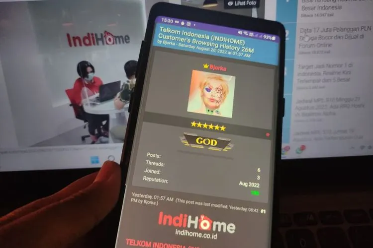 Tidak lama, setelah kebocoran data PLN, pada 20 Agustus 2022 terjadi kebocoran data kembali. Kasus kali ini sempat membuat heboh masyarakat, karena terdapat 26 juta riwayat pencarian milik pelanggan Indihome dijual bebas oleh pengguna bernama 'Bjorka' pada Breached Forums.