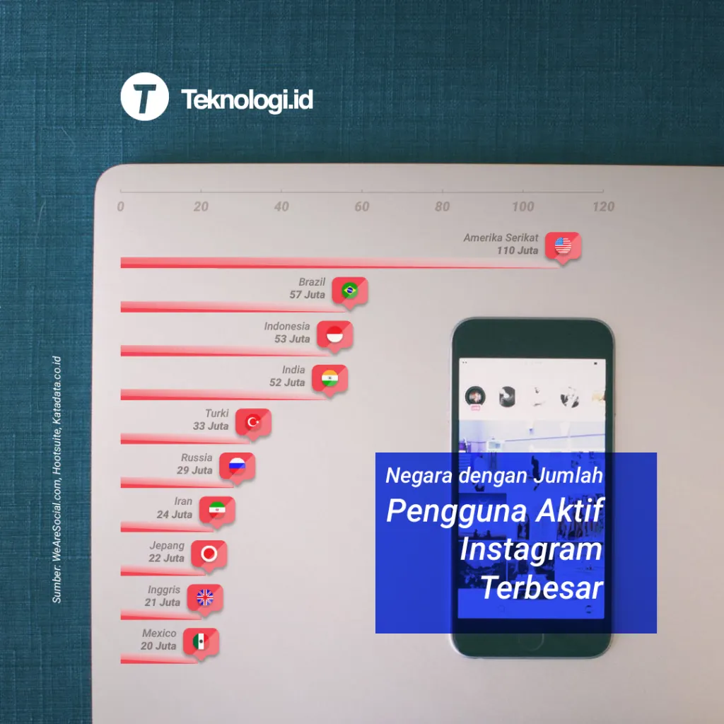 Berdasarkan hasil survei WeAreSocial.net dan Hootsuite, Instagram diketahui merupakan media sosial dengan jumlah pengguna terbanyak ke tujuh di dunia. Instagam merupakan platform jejaring sosial yang digunakan untuk berbagi foto dan juga untuk memasarkan produk bisni. Diketahui pula jumlah total pengguna media sosial ini mencapai angka 800 juta pada Januari 2018. Pengguna aktif Instagram paling banyak berasal dari Amerika Serikat dengan jumlah mencapai 110 juta, satu peringkat dibawahnya ada Brazil dengan 57 juta pengguna aktif, dan di peringkat ketiga ada Indonesia dengan jumlah pengguna aktif mencapai 55 juta. Instagram juga merupakan media sosial yang tergolong popler dan paling sering digunakan keempat setelah Youtube, Facebook, dan Whatsapp.