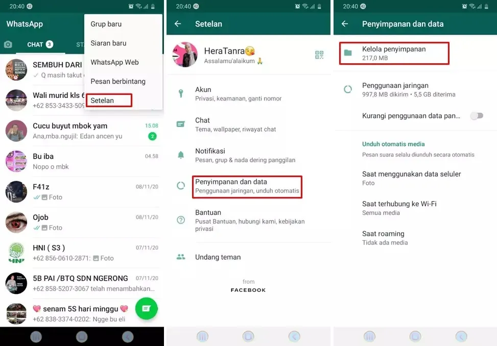 Cara ini dianggap paling akurat untuk melihat intensitas interaksi dalam bentuk kiriman media. Buka menu Settings, pilih Storage and Data (Penyimpanan dan Data), lalu klik Manage Storage (Kelola Penyimpanan). Pada bagian bawah, akan muncul daftar kontak atau grup yang paling banyak menghabiskan memori ponsel. Urutan teratas biasanya adalah mereka yang paling sering mengirimkan foto, video, atau pesan suara kepada anak, yang menandakan adanya tingkat kedekatan atau intensitas komunikasi yang tinggi.