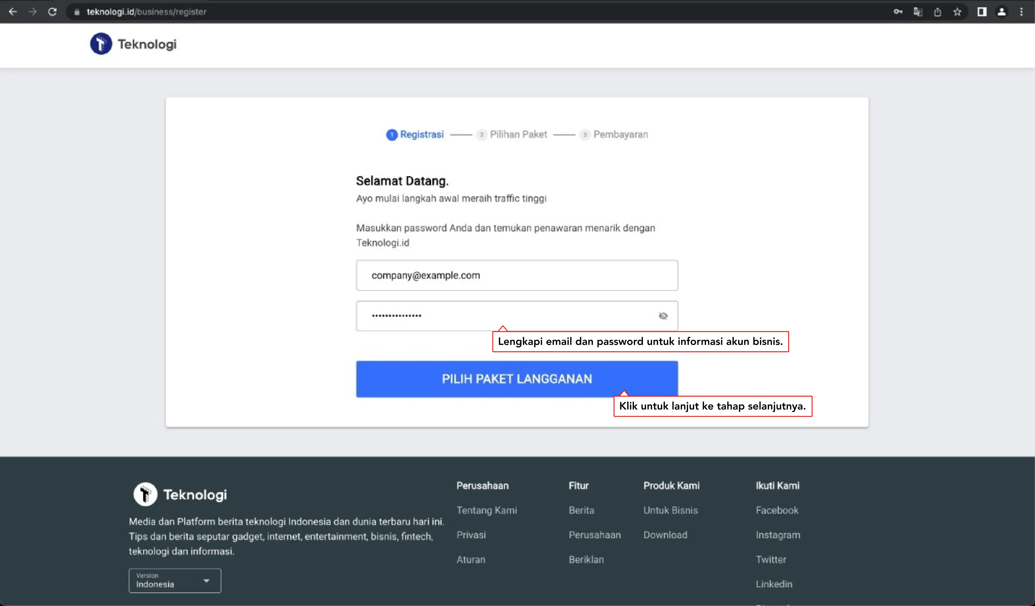 Ini dia cara mendaftarkan bisnis kamu di Teknologi.id dengan beberapa langkah mudah berikut ini: