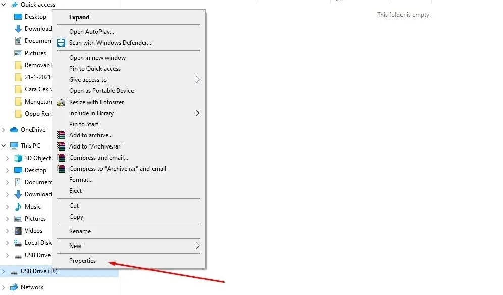 - Pindahkan file yang ada di flash disk ke komputer agar ruang kosongnya makin besar. Langkah Ini opsional, bisa tidak dilakukan bila ruang kosong di flash diskmu sudah cukup besar.