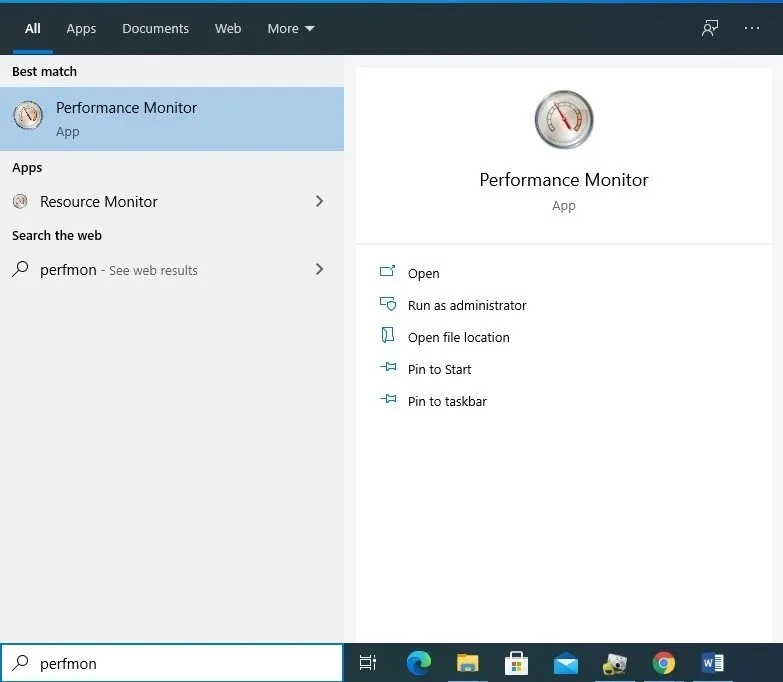 - Jika sudah muncul “Performance Monitor” klik aplikasi tersebut.