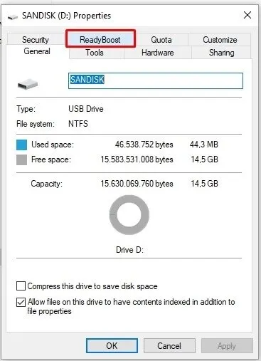 - Temukan dan klik tab ReadyBoost.