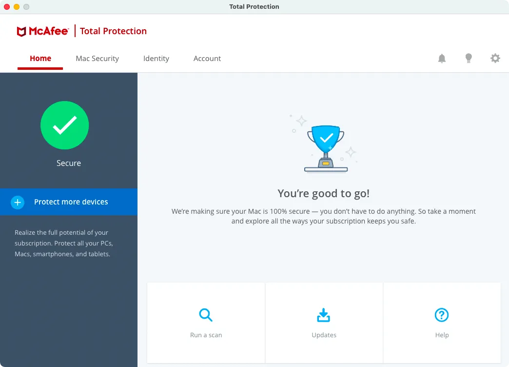 McAfeee Total Protection adalah salah satu platform antivirus dan keamanan internet yang telah teruji dan terpecaya. Perangkat lunak ini membawa kemanan ke tingkat yang lebih baik dengan memperkenalkan konsep yang dikenal dengan skor perlindungan. Fitur ini bertindak sebagai skor pengukur bagi pengguna akhir untuk menentukan seberapa aman keberadaan omline mereka sebenarnya.