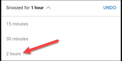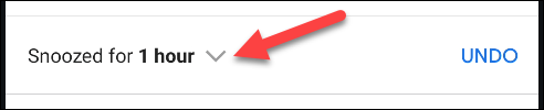 Notifikasi akan menampilkan tulisan “Snoozed for 1 Hour.” Ketuk panah bawah untuk melihat opsi waktu lainnya.