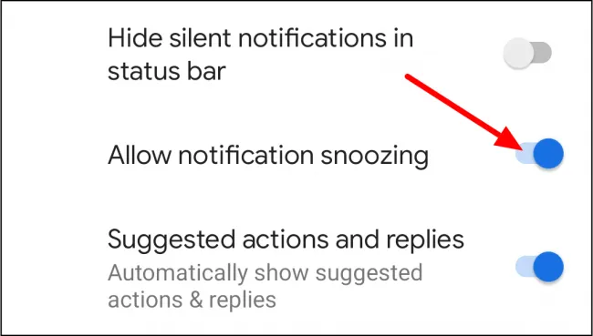 Ketuk toggle untuk mengaktifkan “Allow Notification Snoozing.”