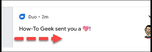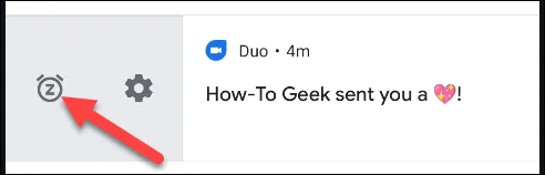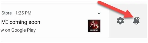 Angkat jari sebelum notifikasi tergeser penuh. Akan muncul ikon gerigi, atau dapat pula berupa bel (Samsung Galaxy) atau jam (Google Pixel). Ketuk ikon tersebut.
