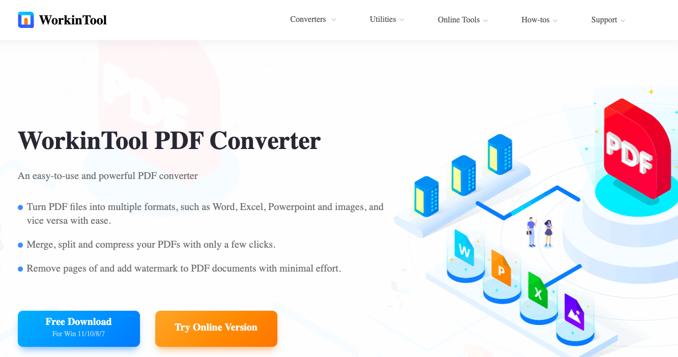 WorkinTool PDF Converter adalah alat pemrosesan PDF berfitur lengkap yang tersedia di Windows dan halaman web. Dikembangkan oleh perusahaan perangkat lunak perkantoran yang berpengalaman dan canggih, WorkinTool, secara efisien dapat menangani masalah PDF. Secara umum, kamu bisa menggunakannya untuk mengedit PDF dengan kuas, teks, sorotan, tanda tangan, dll., mengelola halaman PDF, mengompres PDF, menggabungkan dan membagi PDF, membuka dan melindungi PDF, memproses tanda air PDF, dan banyak lagi.