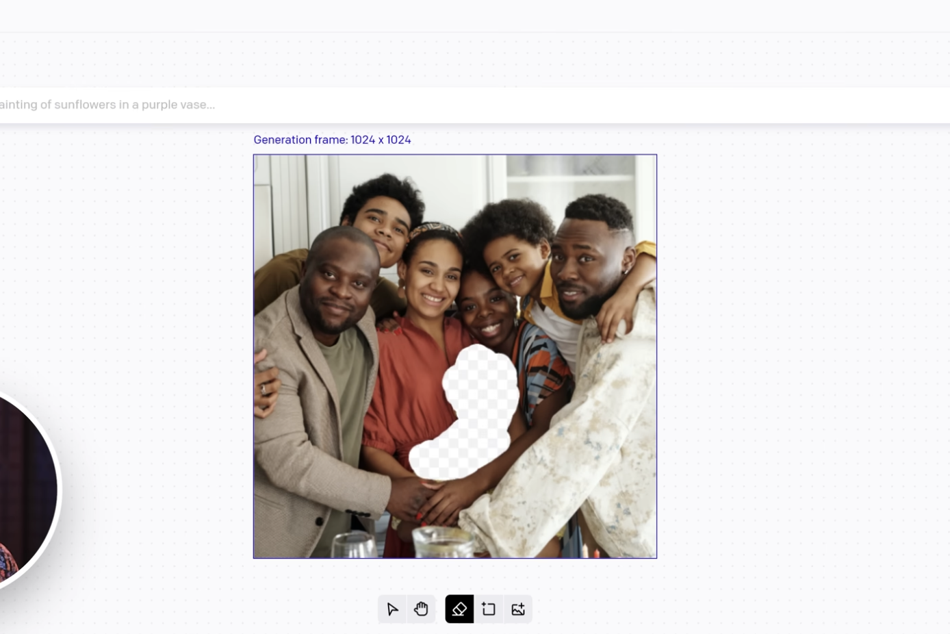 Masih menggunakan bantuan DALL-E, Dinda menghapus orang yang ingin dihilangkan dalam foto dan menggantinya dengan gambar lain di bagian yang telah dihapus.