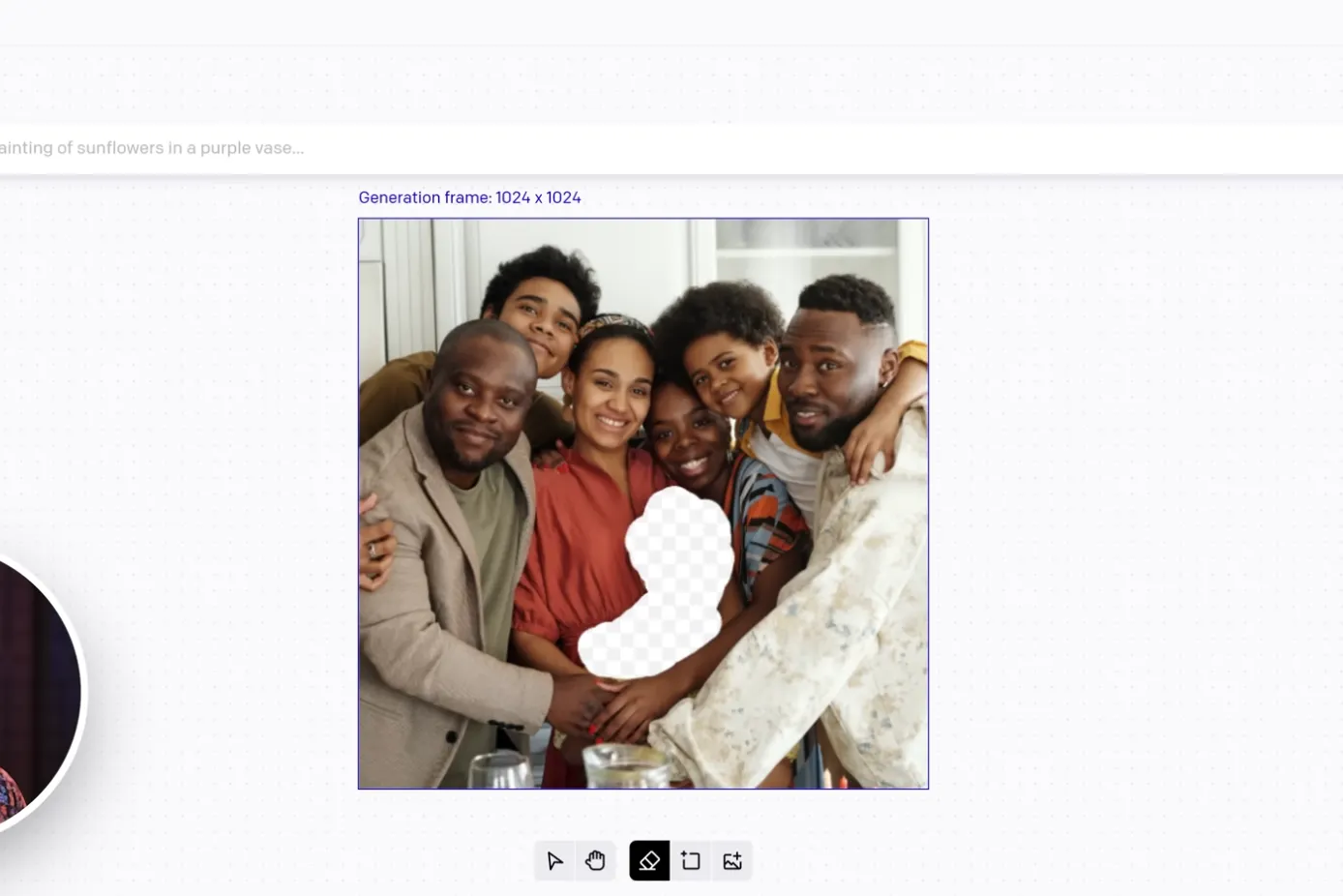 Setelah menghapus sebagian gambar, Dinda memasukan prompt "pria dengan pacar" yang kemudian AI men-generasi beberapa foto bersama pacar palsu.