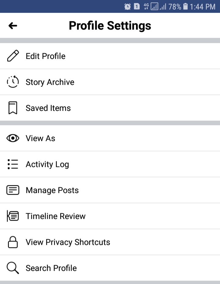 1. Masuk ke halaman profil Facebook kamu, ketuk titik tiga yang berada di sebelah kanan fitur Add Story. Lalu, akan terbuka halaman Profile Settings dan kamu dapat memilih Activity Log.