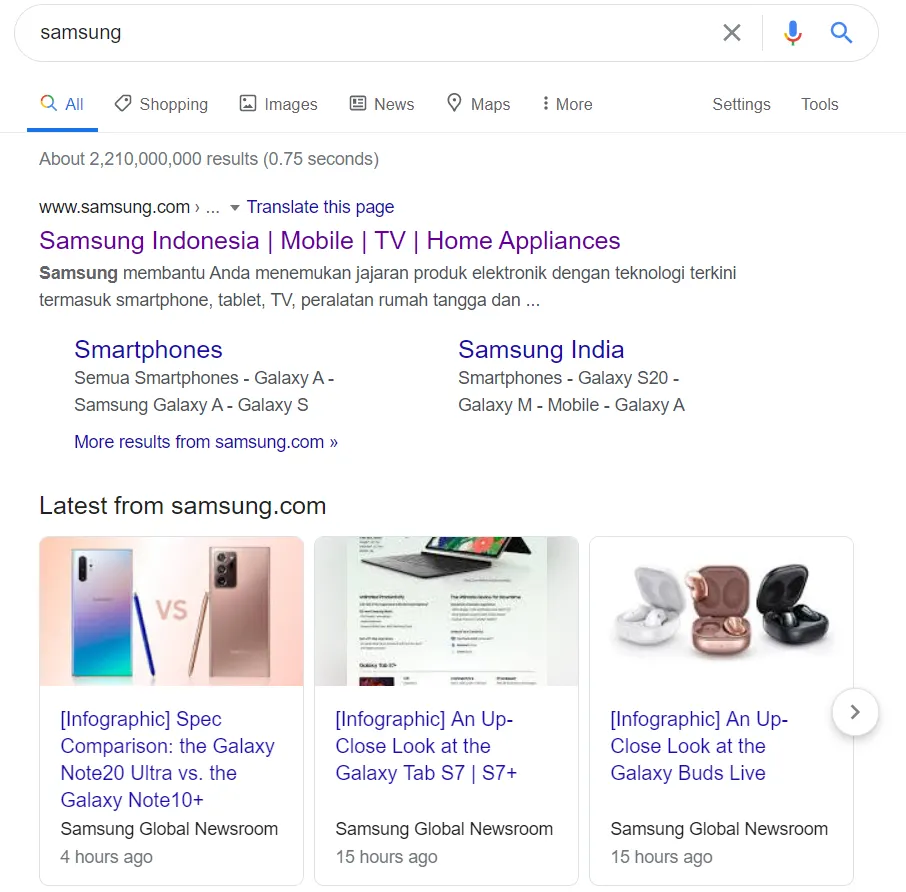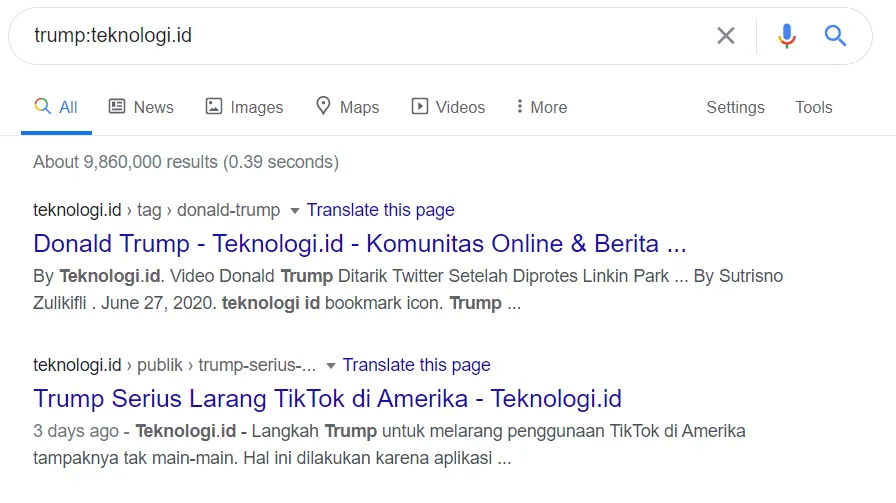 6. Gunakan tanda titik dua untuk mencari informasi dari situs tertentu