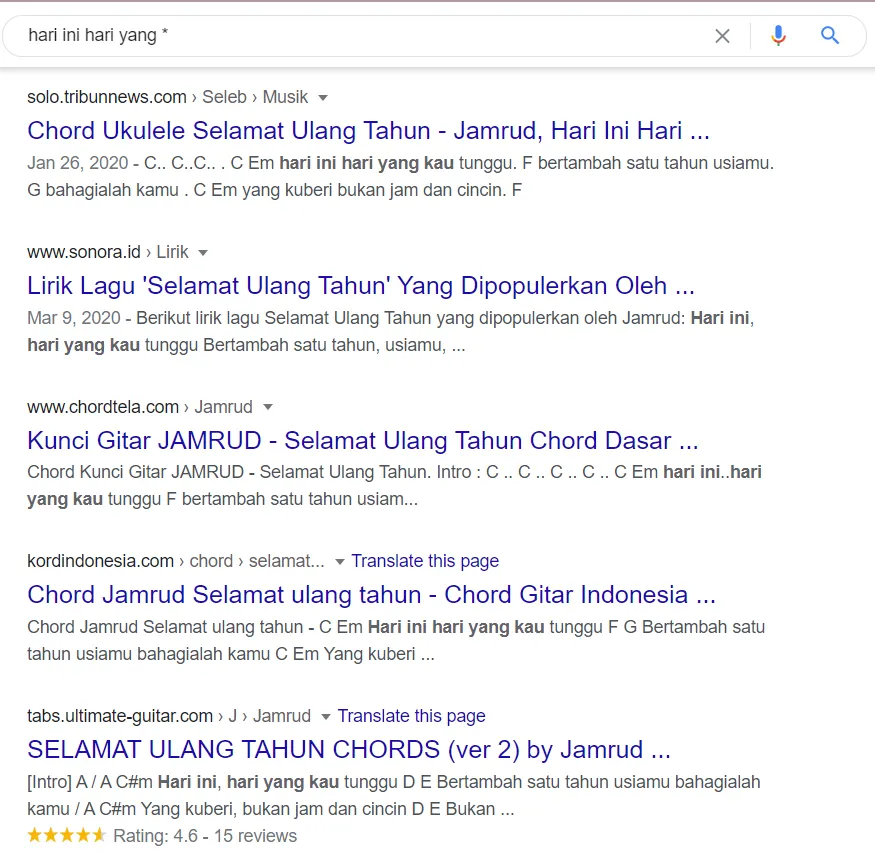 2. Gunakan tanda bintang untuk mencari kata yang hilang