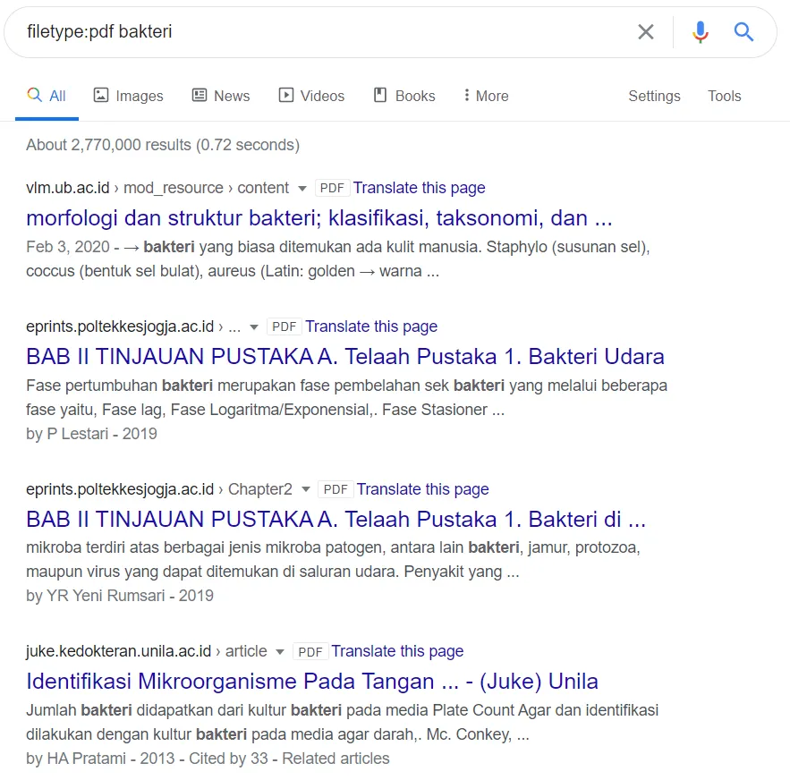 5. Gunakan filetype: untuk mencari file dengan tipe tertentu
