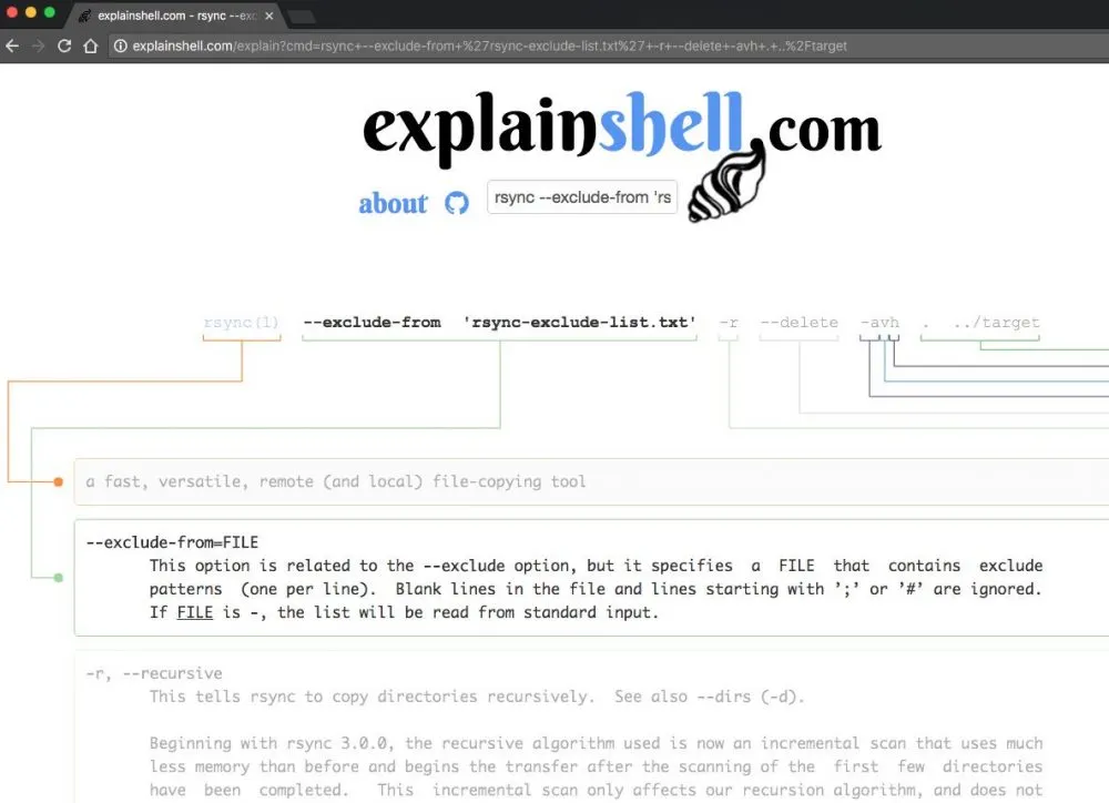 Apakah kamu pengguna Unix? Tool ini memungkinkan seseorang untuk mengetik perintah Unix dan kamu akan mendapatkan penjelasan visual dari setiap perintah yang kamu gunakan.