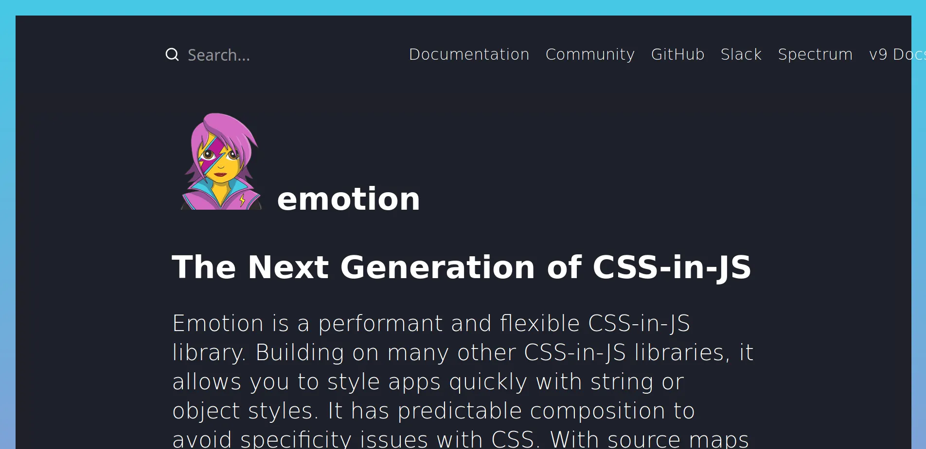 library JS yang menjanjikan pengguna fleksibilitas dan tingkat kinerja tinggi. Emotion berhasil menghindari masalah kekhususan CSS dengan menggunakan komposisi yang dapat diprediksi dan tidak membutuhkan waktu sama sekali untuk menata aplikasi menggunakan string atau gaya objek. Ada dua metode utama dalam menggunakan Emotion. Yang pertama adalah framework agnostic dan yang kedua adalah untuk digunakan dengan React.