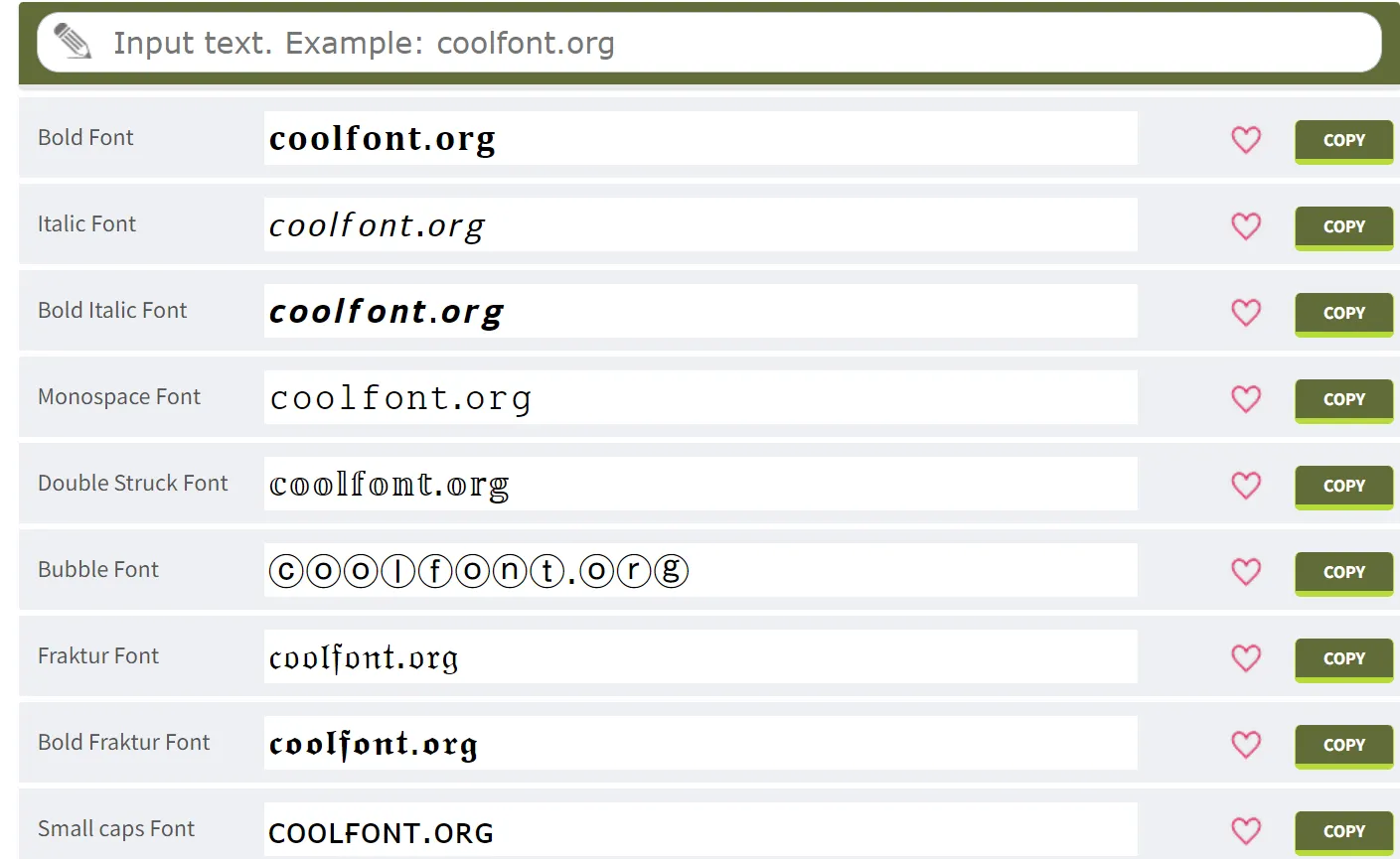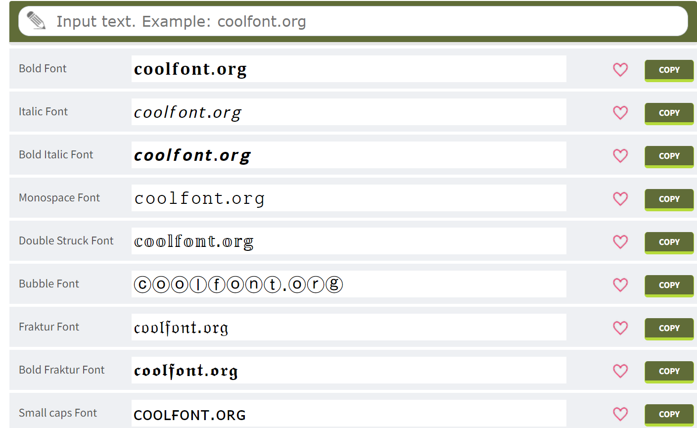 Berikutnya, ketik tulisan yang ingin kalian masukkan nantinya di dalam bio Instagram. Kalian dapat langsung mengeklik bagian bar panjang yang tersedia di website. Ada banyak pilihan font di bawahnya yang dapat disesuaikan dengan selera kalian. Kalian juga dapat menambahkan simbol atau emoticon di dalam tulisannya.