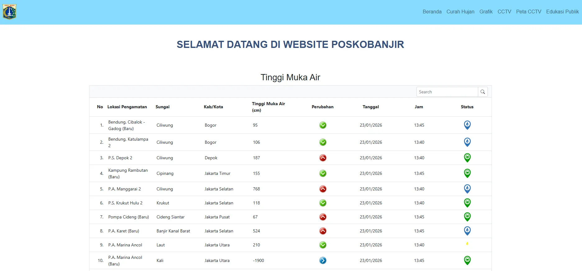 Foto: tangkapanlayar/poskobanjirdsda.jakarta.go.id