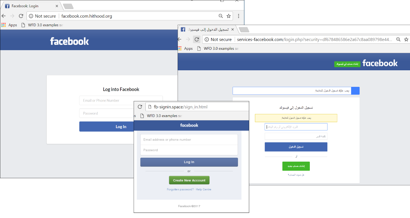 Misalnya “instagrammm.com”, sedangkan situs web yang asli adalah “instagram.com”. Penggunaan alamat nama situs web palsu ini dimaksudkan untuk mengelabui korban yang tidak menaruh curiga agar percaya bahwa tautan tersebut asli.