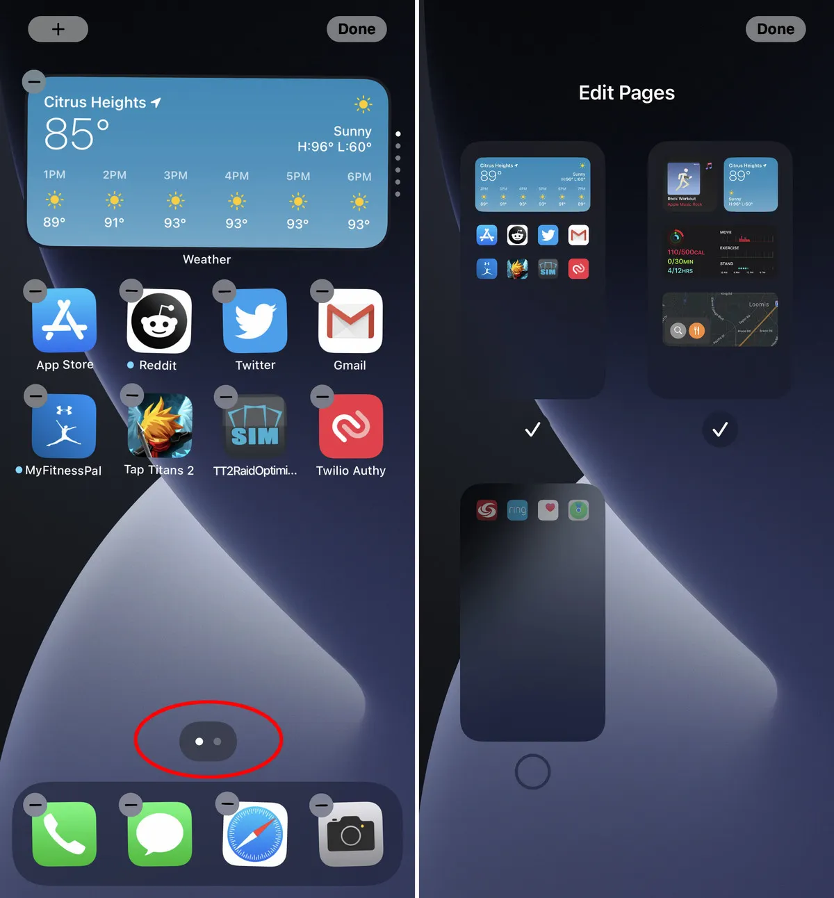 Kamu dapat menghapus seluruh halaman aplikasi dan Widget dari tampilan layar. Caranya, ketuk dan tekan lama ruang kosong di layar beranda untuk memasuki mode 'jiggle'. Kemudian ketuk indikator pada halaman kecil yang terletak di dekat bagian bawah layar.