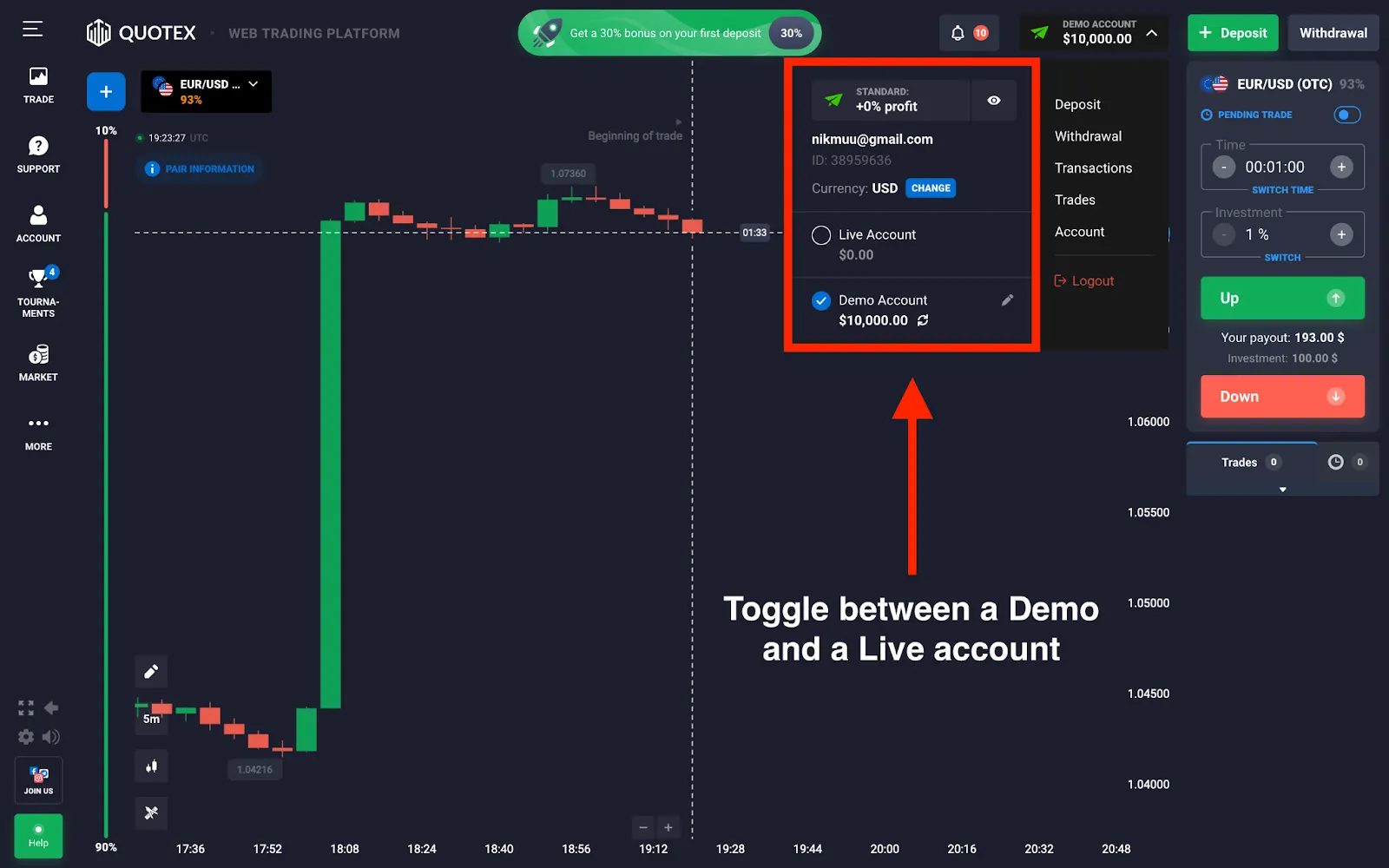 Gunakan Akun Demo: Akun demo Quotex adalah alat yang ampuh untuk berlatih strategi Anda dan mendapatkan kepercayaan diri sebelum trading dengan uang sungguhan. Gunakan fitur ini untuk bereksperimen dengan berbagai pendekatan dan temukan apa yang paling cocok untuk Anda.