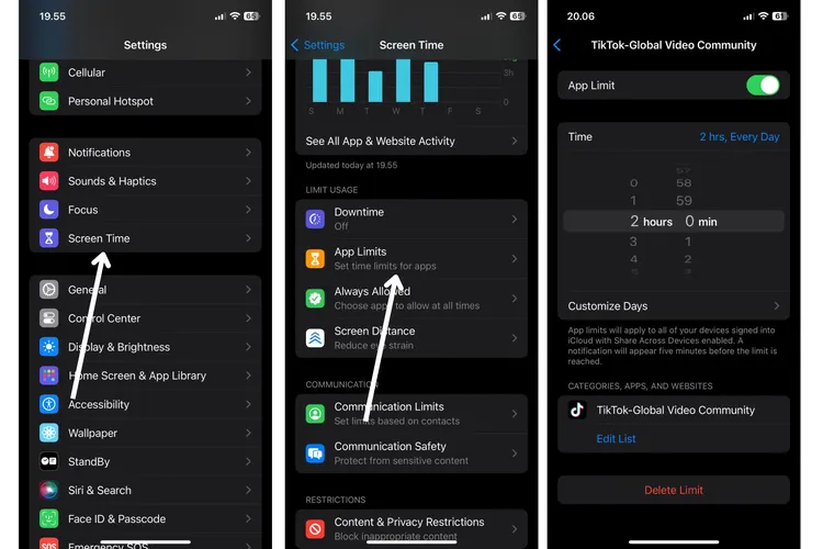 Cara mengkatifkan durasi layar di aplikasi iPhone