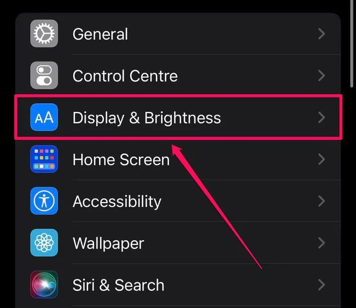 2. Scrol ke bawah dan ketuk Tampilan & Kecerahan