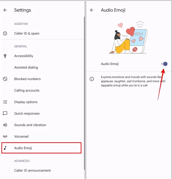 4. Di dalam pengaturan, cari opsi "Emoji Audio" yang baru ditambahkan dan aktifkan tombolnya untuk mengaktifkan fitur ini.