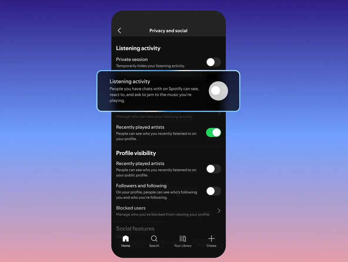 Untuk mengaktifkan fitur ini, pengguna dapat langsung masuk ke menu Privacy and Social di pengaturan aplikasi Spotify. Dari sana, pengguna bebas memilih apakah ingin membagikan aktivitas mendengarkan musik atau tidak. Aktivitas ini juga bersifat terbatas, karena hanya bisa dilihat oleh kontak yang telah terhubung melalui menu Messages.