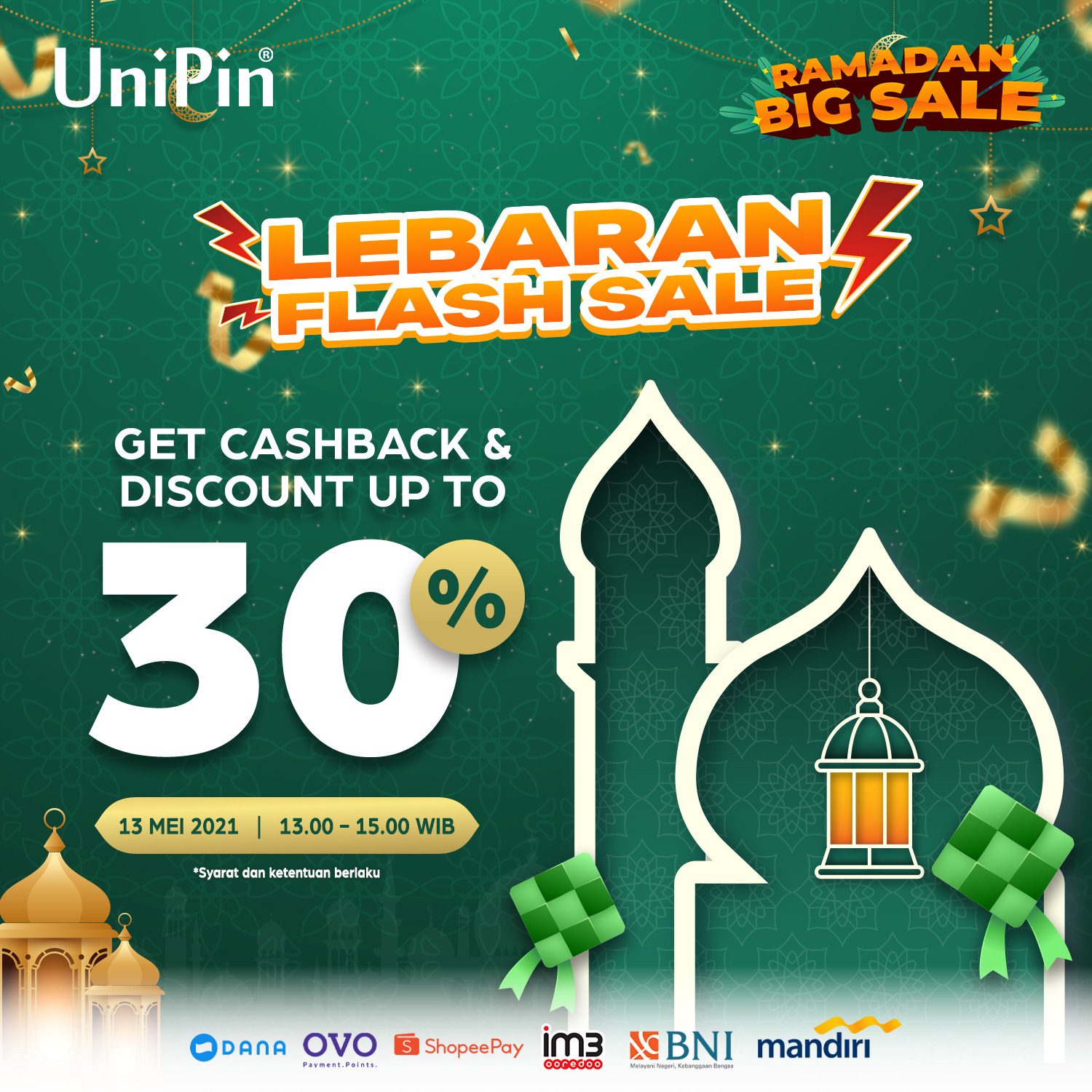 Informasi lebih lanjut terkait program promo Ramadan Big Sale, Sahur Bareng UniPin dan Lebaran Flash Sale dapat diakses secara langsung melalui akun instagram UniPin Indonesia @UniPinindonesia atau akun Facebook resmi UniPin. Detail profil dan deskripsi penawaran juga dapat dicek langsung melalui situs resmi UniPin www.UniPin.com.