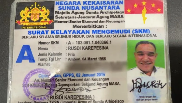 dan STNK Rusdi Karepesina ini diterbitkan oleh Negara Kekaisaran Sunda