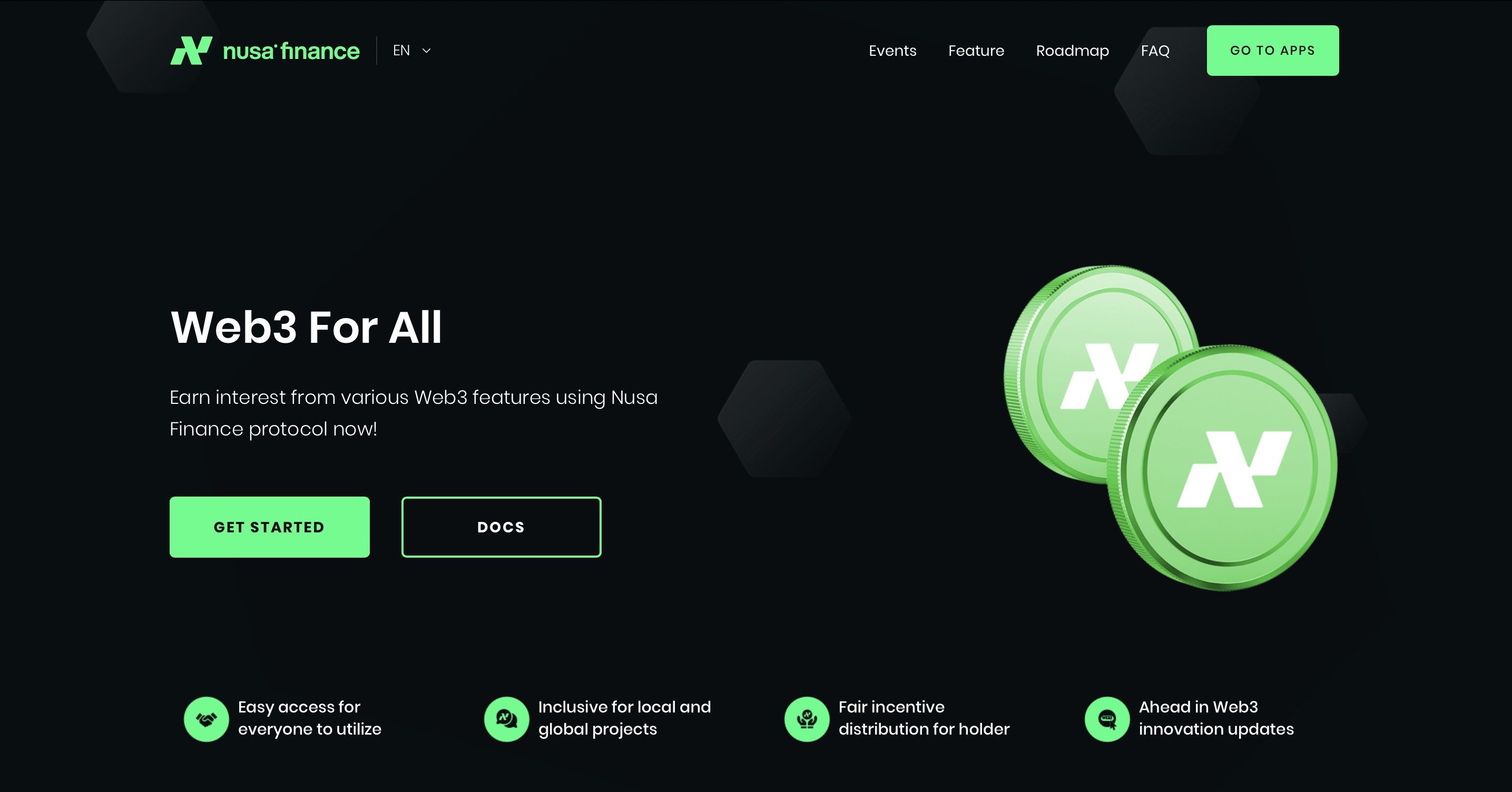 Nusa Finance merupakan sebuah perusahaan layanan keuangan berbasis kripto yang telah meluncurkan platform NFT Marketplace, yaitu pasar terbuka yang memungkinkan pengguna untuk menciptakan, menyimpan, dan menjual aset NFT (non-fungible token). Nusa Finance hadir sebagai solusi yang menarik bagi bisnis yang ingin memanfaatkan potensi keanggotaan NFT untuk pertumbuhan dan kesuksesan mereka. Nusa Finance menyediakan layanan konsultasi yang memungkinkan bisnis untuk berdiskusi mengenai pembuatan produk keanggotaan NFT yang eksklusif sesuai dengan visi dan tujuan mereka.