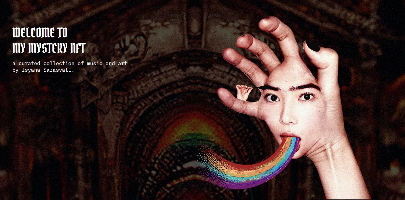 Dilansir dari situs yang sama, Mystery NFT merupakan koleksi yang telah dikurasi dari musik dan seni oleh Isyana Sarasvati.