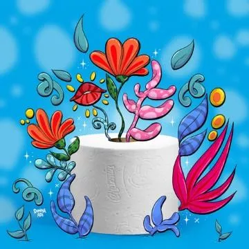 Tak hanya menampilkan gambar tisu toilet semata, Charmin juga menambahkan bunga dan dekorasi warna-warni dengan latar belakang berwarna biru pada NFT berjenis gambar yang satu ini.