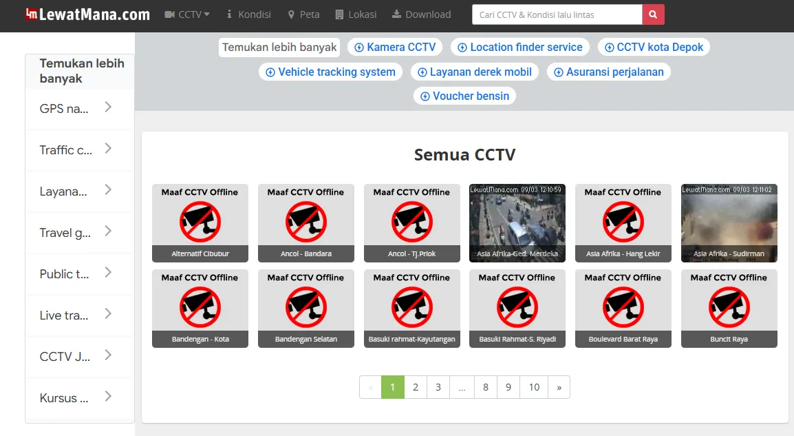Lewatmana.com menjadi salah satu platform populer yang menyediakan layanan pemantauan lalu lintas melalui CCTV online. Situs ini mengumpulkan berbagai kamera pemantau dari sejumlah kota besar di Indonesia.