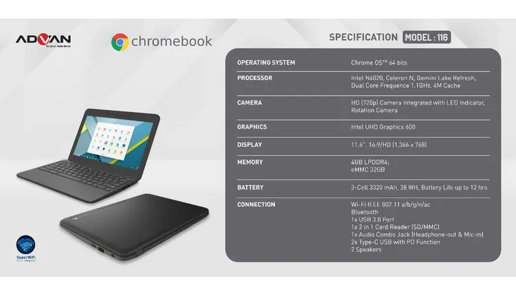 akan diberi nama Advan Chromebook 116. Laptop ini nantinya akan dirakit di