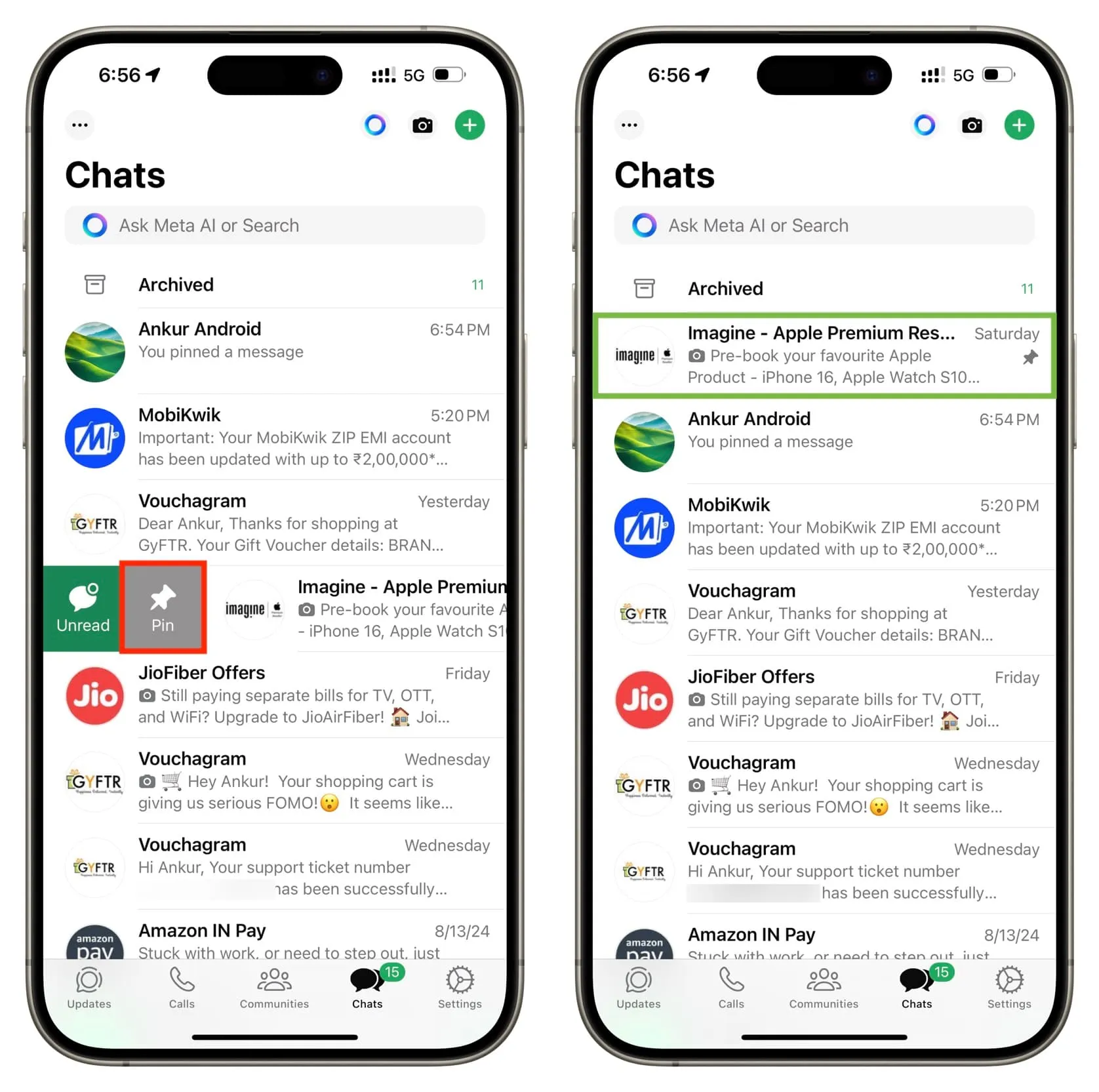 Pin Chats memungkinkan Anda menyematkan hingga tiga obrolan penting di bagian atas daftar chat, sehingga mudah diakses tanpa harus gulir panjang. Fitur ini berguna untuk grup keluarga, kerja, atau kontak teman dekat yang sering dibuka. Cara menggunakannya cukup sederhana: Buka WhatsApp, pergi ke tab Chats, tekan lama pada chat yang ingin disematkan (di Android) atau geser ke kanan (di iOS), lalu ketuk ikon pin dan konfirmasi. Untuk melepas, ulangi langkah dan pilih Unpin. Keuntungannya, fitur ini mengurangi waktu pencarian di daftar chat yang memanjang, terutama bagi pengguna dengan ratusan grup. Fitur ini sudah ada sejak 2018, tapi masih jarang dimanfaatkan penuh untuk organisasi chatting harian.