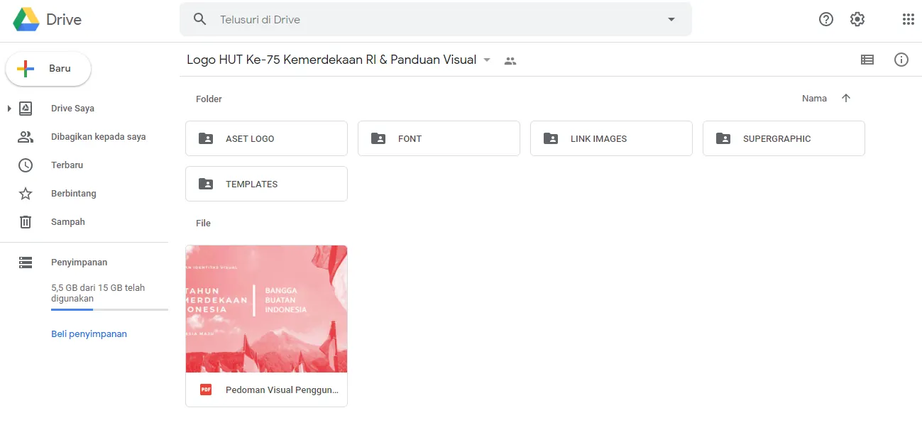 4. Pilih aset logo dari berbagai info yang disediakan terkait logo HUT RI ke-75