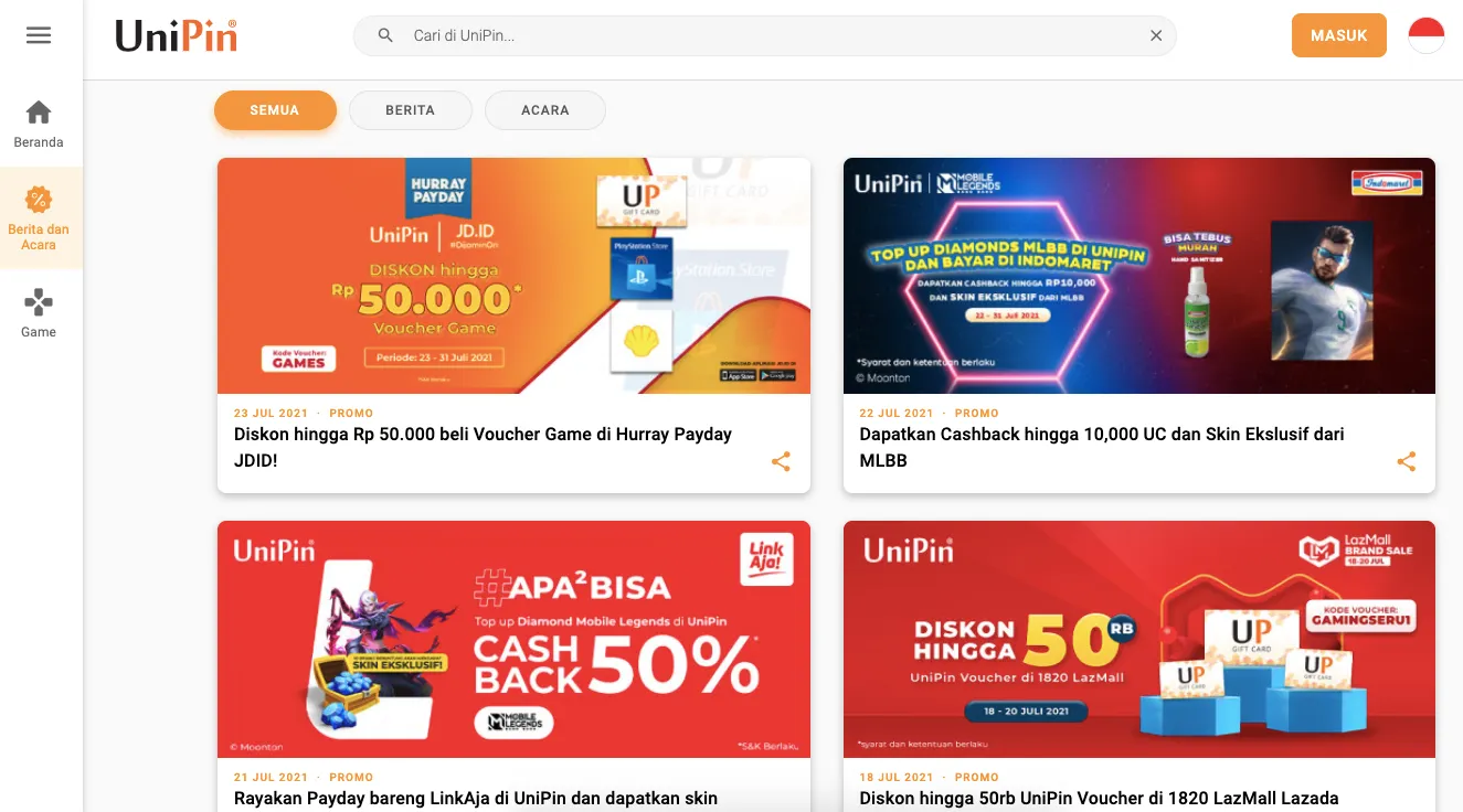 Nantinya promo-promo terbaru yang ada di UniPin dapat kamu gunakan untuk top up dengan lebih hemat. Baik itu top up game, pembelian voucher, ataupun juga untuk top up diamond Mango Live. Jadi jangan lupa untuk cek dan pakai promo-promo terbaru dari UniPin ya.