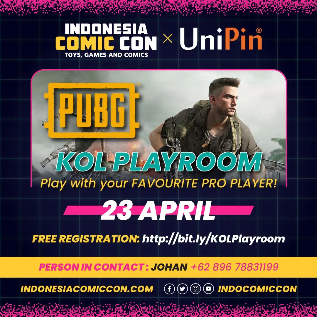 “Ketiga event ini telah kami persiapkan secara spesial untuk penggemar Indonesia Comic Con. Sebagai wujud kolaborasi UniPin yang pertama dengan ICC, kami ingin para gamers, khususnya tetap dapat terhibur dari rumah.”