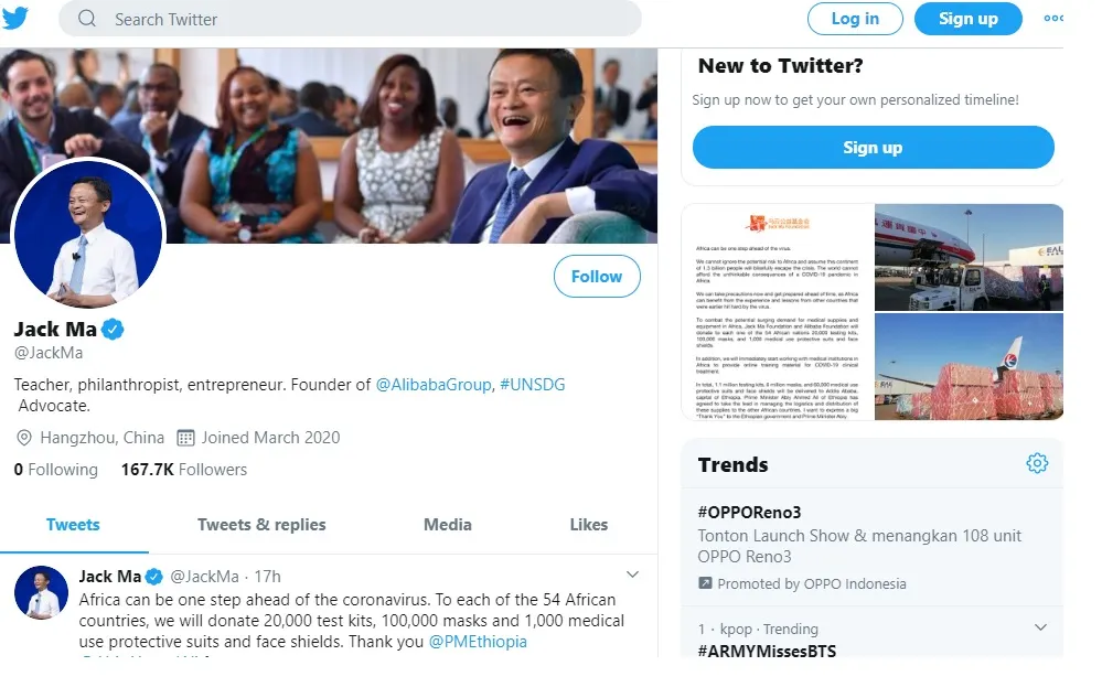Teknologi.id - Pendiri raksasa e-commerce Alibaba dari China, Jack Ma, akhirnya punya akun Twitter. Akun dengan handle @JackMa itu terlihat dibuat pada 16 Maret 2020, dan langsung terverifikasi oleh Twitter atau tercentang biru.