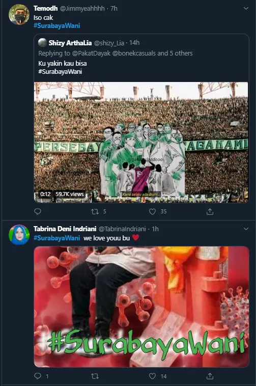 Tagar ini merupakan bentuk dukungan untuk masyarakat Surabaya dan Wali Kota Tri Rismaharini dalam upayanya memerangi Covid-19.