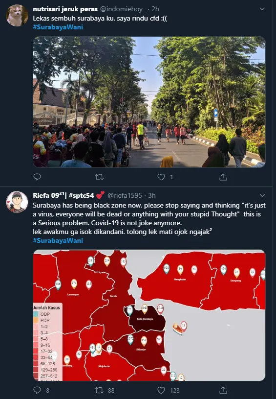 Berikut beberapa tweets yang terekam dalam tagar SurabayaWani: