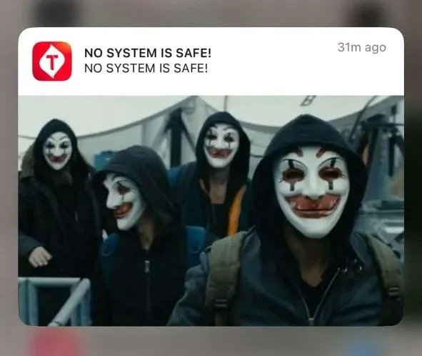 Menariknya, fenomena notifikasi “No System is Safe” ternyata tidak hanya muncul di Indonesia. Di Turki, pesan serupa juga diterima pengguna pada tiga aplikasi, yakni Fenerbahce SK (aplikasi klub sepak bola Turki), Nays (dompet digital), dan aplikasi Domino.