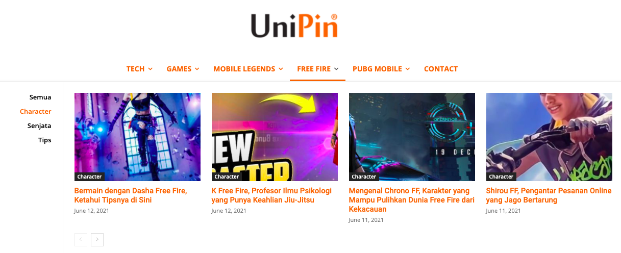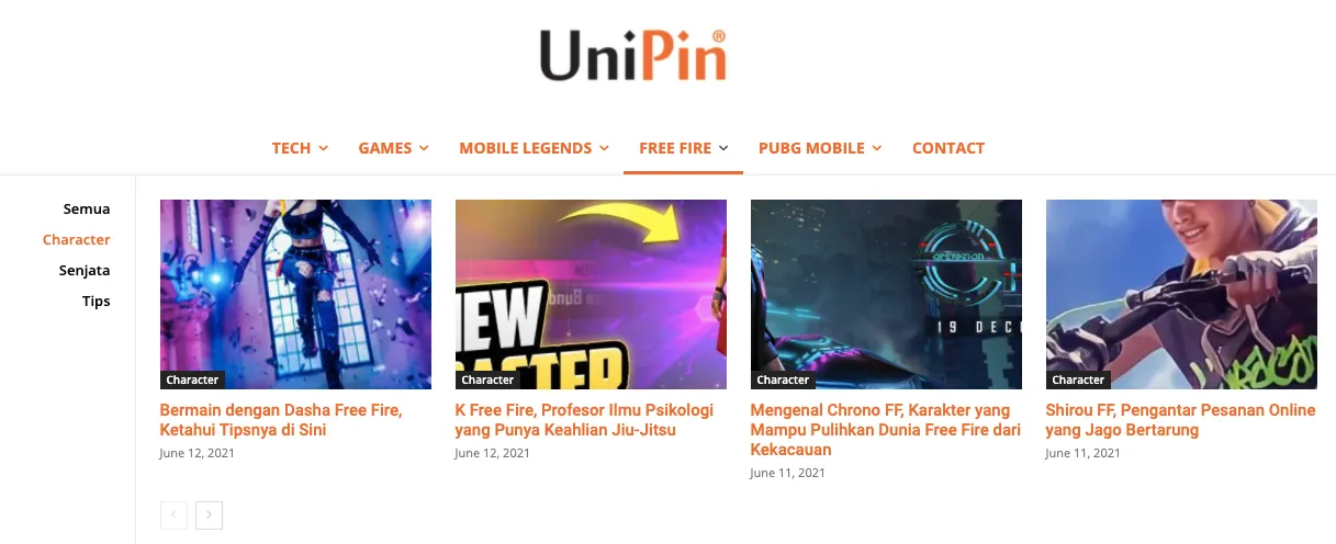 Tak hanya mengulas seputar senjata FF, Blog UniPin juga membahas dan mengulas berbagai karakter FF. Mulai dari karakter Free Fire terbaik, karakter FF terfavorit, dan banyak lagi. Sudah ada banyak sekali karakter FF yang dibahas di blog UniPin. Mulai dari Jota FF, Chrono FF, Adam Free Fire, Hayato, dan banyak lagi.