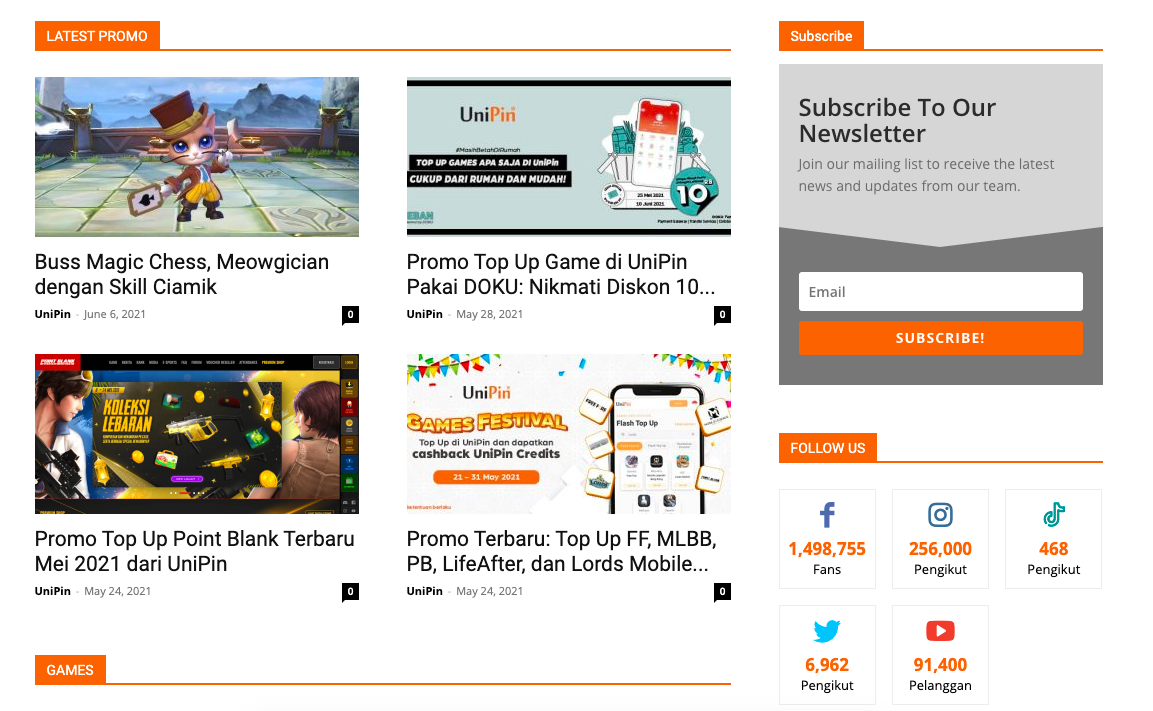 Jika ingin tahu promo terbaru dari UniPin, kamu tinggal lihat bagian latest promo di Blog UniPin. Lumayan kan kalau bisa top up lebih hemat dan dapat cashback/bonus.