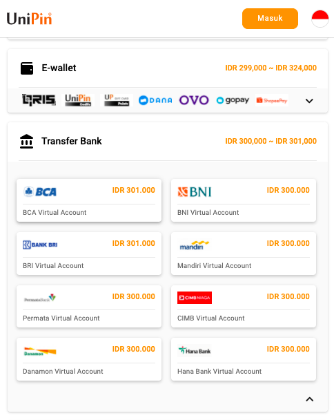 Salah satu tempat yang bisa kamu gunakan untuk membeli voucher Steam guna mengisi Steam Wallet adalah UniPin. Di UniPin kamu bisa beli dan bayar pakai berbagai metode pembayaran. Termasuk juga bisa pakai transfer bank (transfer virtual account). Selengkapnya kamu bisa gunakan cara berikut.